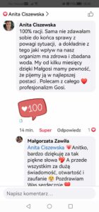 Z przyjemnością udostępniam rekomendacje moich Klientów, ufam, że pomogą Wam w podjęciu najlepszych decyzji w dbałości o zdrowie.
